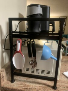 Savršena stvar za moju malu kuhinju! Polica je izuzetno čvrsta i konačno imam mjesta ispod mikrovalne za sve začine. Montaža je bila brza, a crna boja baš paše uz ostatak kuhinje. Preporučujem svakome tko ima malo mjesta.